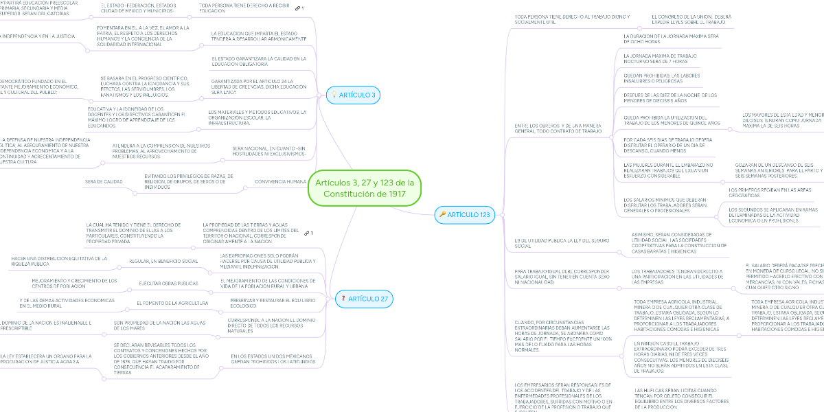 Articulos 3 27 Y 123 De La Constitucion De 1917 Mindmeister Mapa Mental